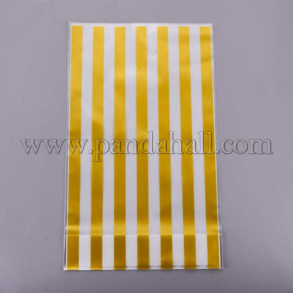 Plastic Candy Bags, Stripe Pattern, Gold, 24.8×14.9cm; about 50pcs/bag