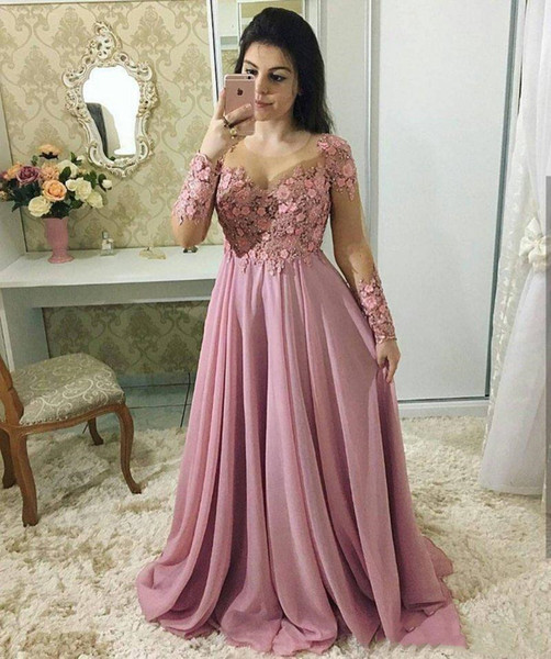 Plus Size A Line Chiffon Long Sleeve Dresses Evening Wear Zuhair Murad Evening Gowns Sleeves vestidos de fiesta Prom Dress