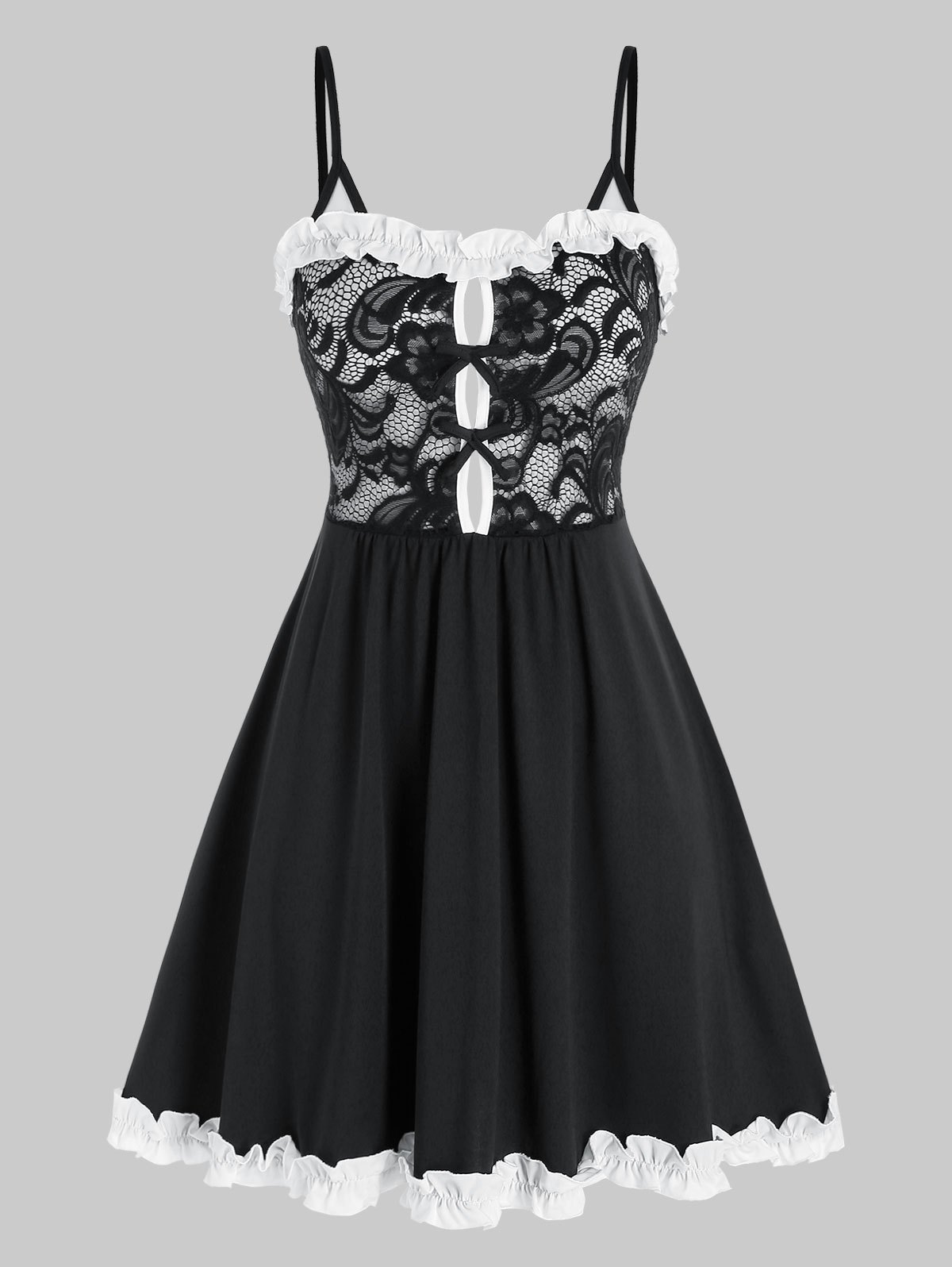 Plus Size Lace Frilled Sexy Lingerie Babydoll with G-string Set