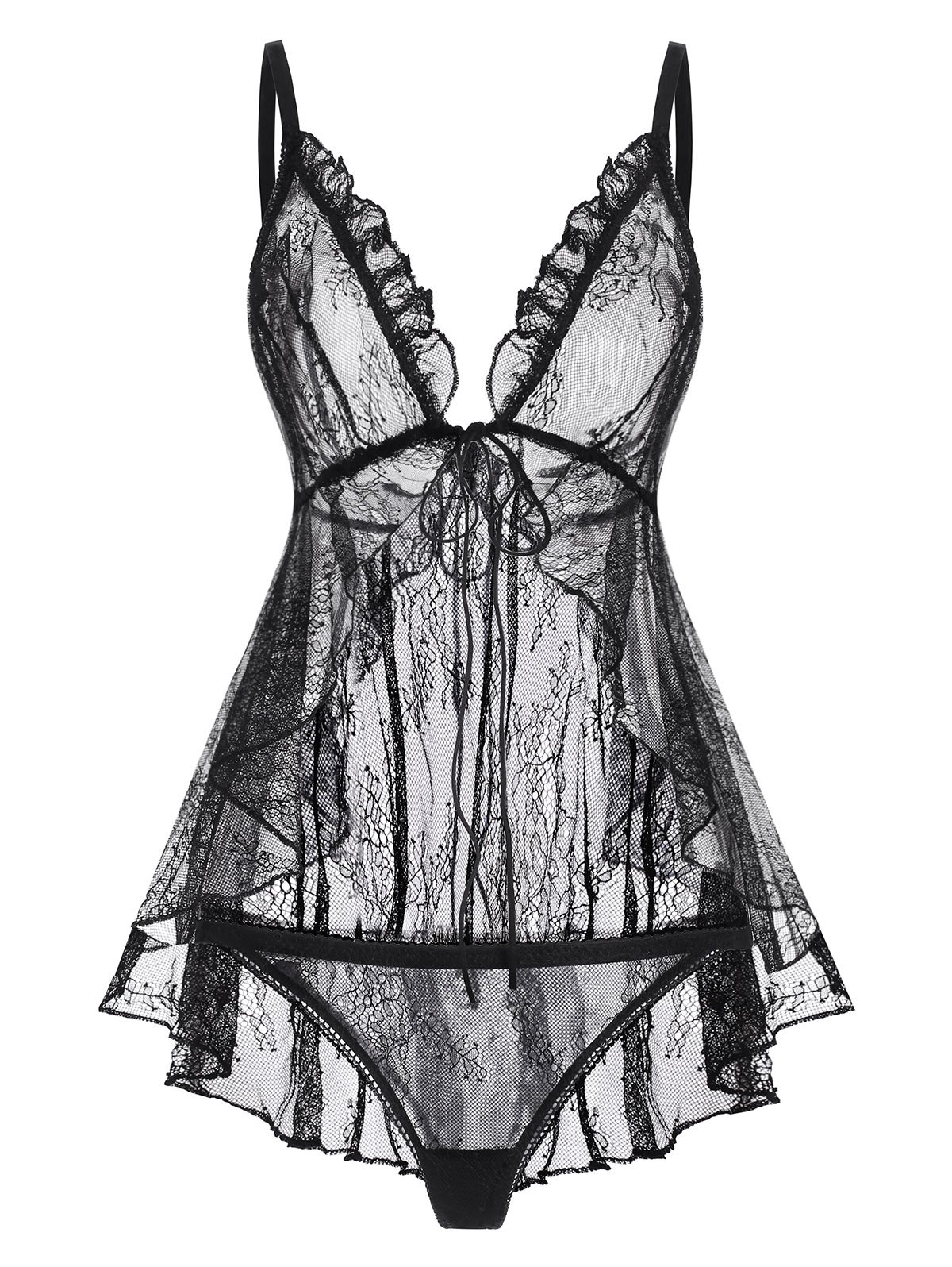 Plus Size Lace Sheer Flounce Sexy Lingerie Set