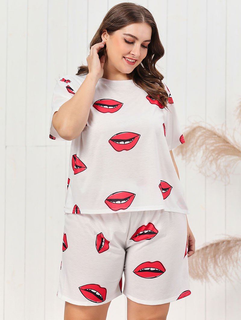 Plus Size Lips Print Short PJ Set