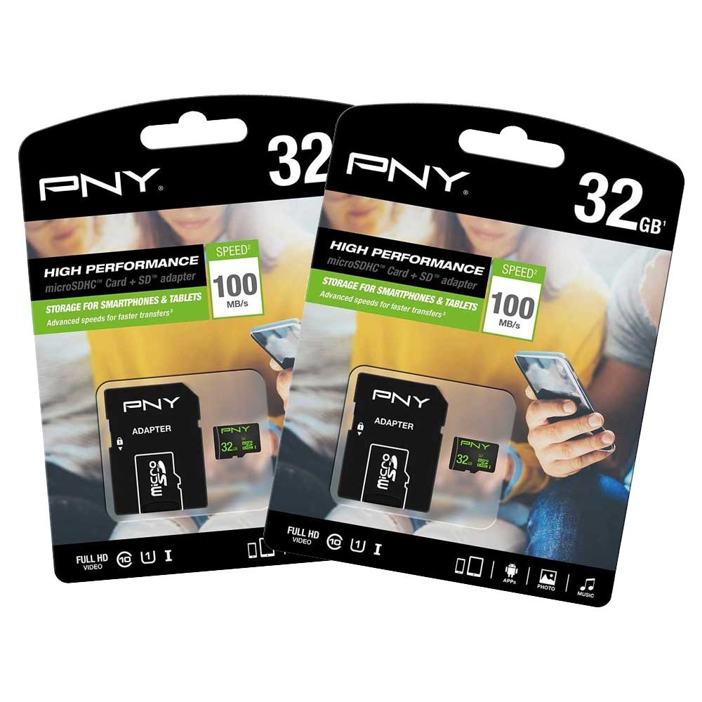 PNY High Performance Micro SD SDHC Memory Card Class10 100MB/s UHS-1 U1 with SD Adapter 32GB – VALUE 2 PACK