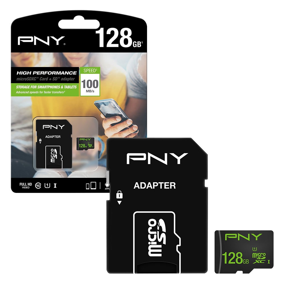 PNY High Performance Micro SD SDXC Memory Card Class 10 UHS-1 U1 100MB/s with SD Adapter – 128GB