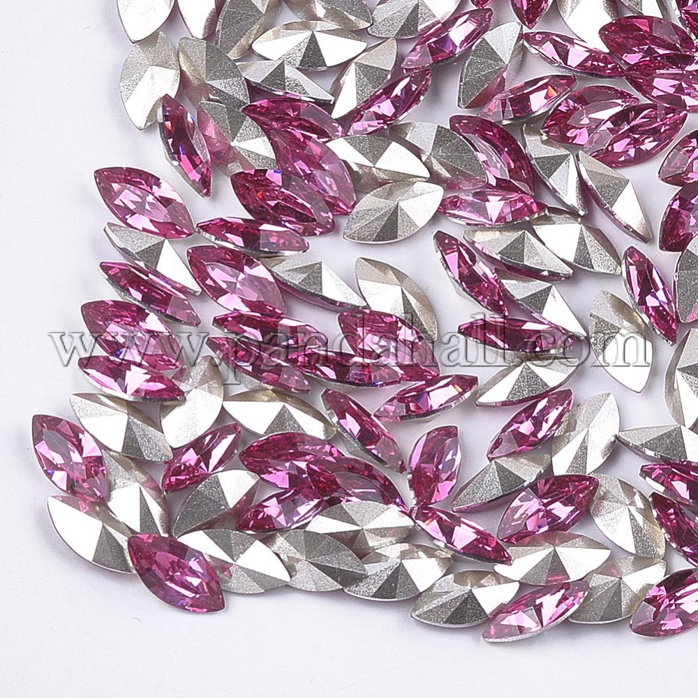 Pointed Back Resin Rhinestone Cabochons, Back Plated, Faceted, Horse Eye, RoseSize: about 9.5~10mm long, 4.5~5mm wide, 3.5mm thick; about 1200pcs/bag.