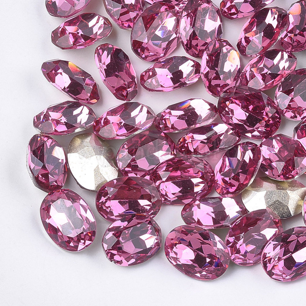 Pointed Back Resin Rhinestone Cabochons, Back Plated, Faceted, Oval, RoseSize: about 9.5~10mm long, 7.5~8mm wide, 4.5mm thick; about 450pcs/bag.
