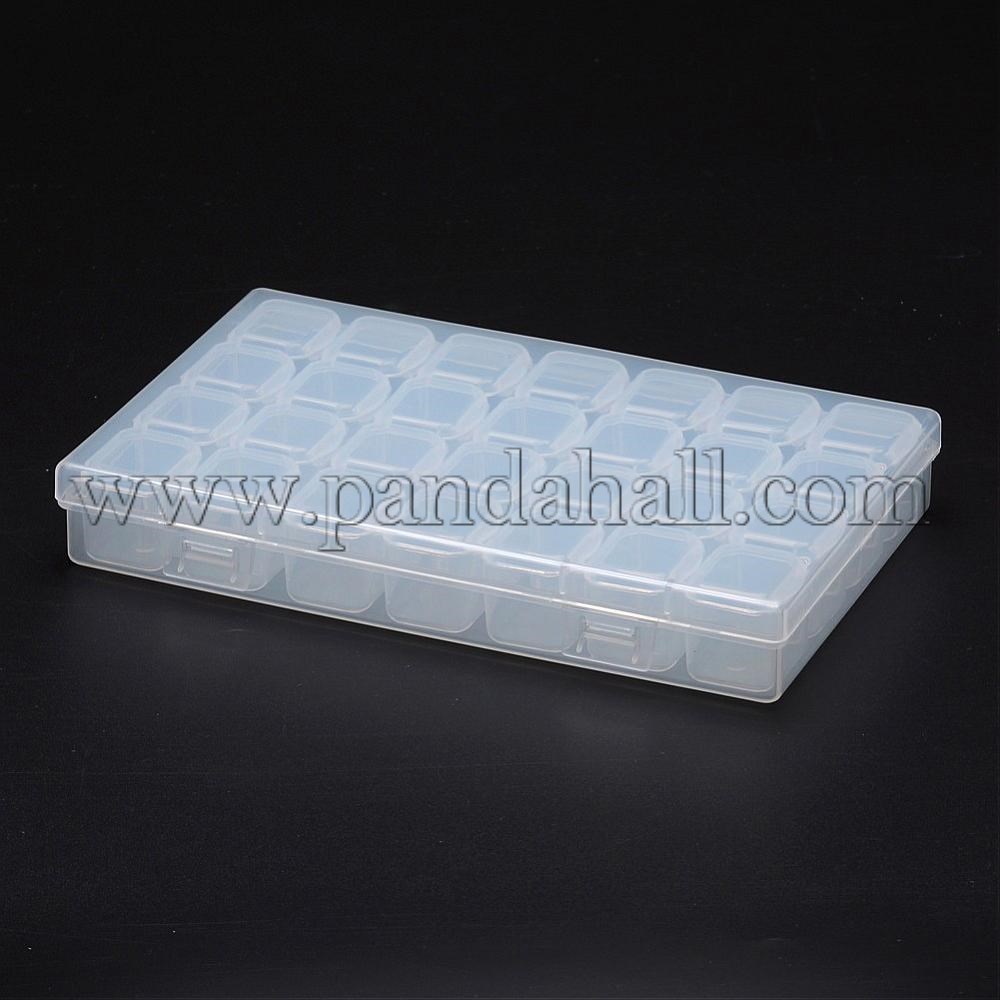 Polypropylene Plastic Bead Storage Containers, Removable, 28 Compartments, Rectangle, ClearSize: about 108mm wide, 175mm long, 26mm thick, compartment: 20x24mm.
