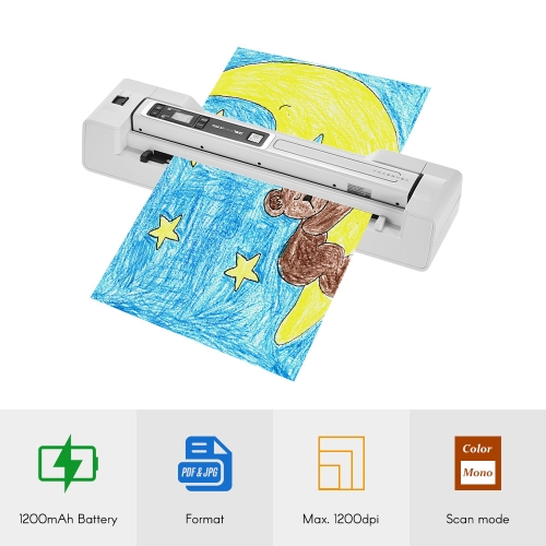 This portable scanner features high-speed high resolution scanning, max. resolution up to 1200dpi when working with the base.