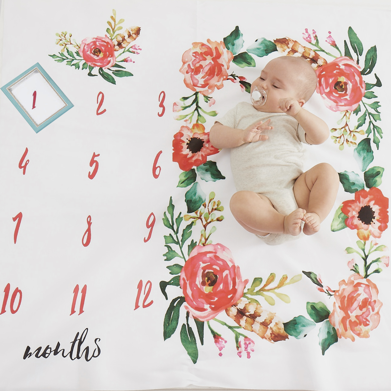 Pretty Floral Print Baby Milestone Blanket Photography Background Prop
