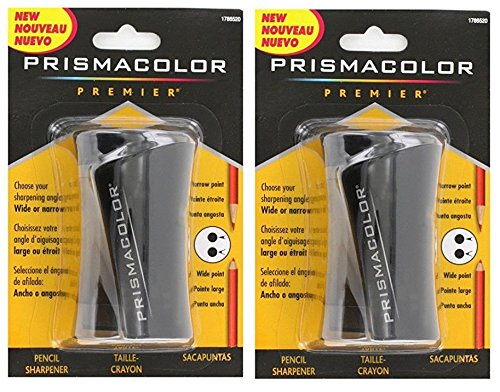 Keep your Prismacolor Premier Colored Pencils sharp and ready for sketching with the Prismacolor Premier Pencil Sharpener. This colored pencil sharpener features two different steel blades–one for a fine point, the other for a medium point. Its translucent body lets you see when it’s full of shavings. This sharpener is specifically designed to sharpen all Prismacolor Premier colored pencils and measures 3 inches high. Pack of 2Sharpens your Prismacolor colored pencils to a perfect point