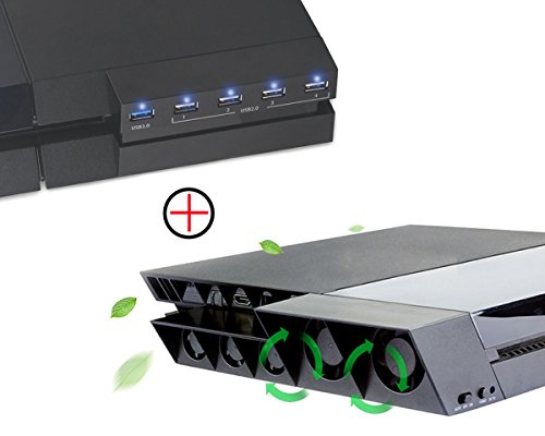 [Automatic Sensor Cooler] Features 5 fans to draw heat out of PS4 and maintain its working temperature, keeping it cool in hot summer and heavy load games. With Turbo button and Auto/Off/On mode control switch; The fans turn on when it gets 38 degrees Celsius and off when the temperature decreases