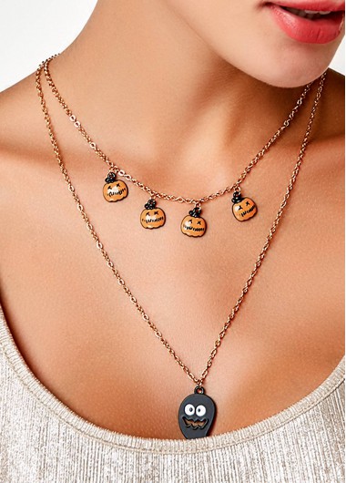 Pumpkin and Ghost Pendant Halloween Layered Chain Necklace