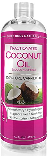 Pure Body Naturals Fractionated Coconut Oil for Skin, Hair, and Carrier for Essential Oils – 16 Fl. Ounce