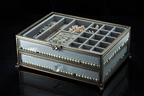 PuTwo Jewelry Boxes 22 Sections Metal Glass Jewelry Organizer Velvet Jewelry Tray Jewelry Box with Free Decorative Pearls