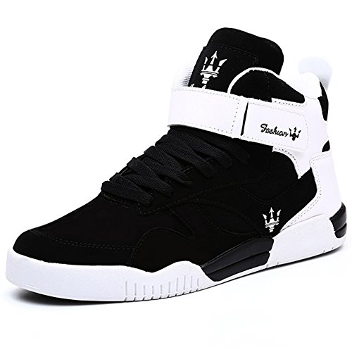 QANSI Mens Performance Leather High Top Lace Up Street Sneakers Outdoor Sports Shoes Black/White 9 M US
