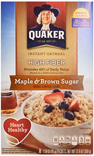 Enjoy a bowl of Quaker Maple and Brown Sugar Instant Oatmeal, providing 40% of your daily fiber requirements without sacrificing great taste. We’ve blended our classic Maple & Brown Sugar flavor with Quaker High Fiber Instant Oatmeal for the perfect answer to your fiber needs. With the rich flavors of maple and brown sugar, you won’t even realize that you’re getting 40% of your daily fiber requirements in one serving.Quaker Instant Oatmeal is made from 100% whole grain Quaker Oats