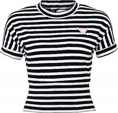 The maritime stripes shirt by Queen Kerosin is slim and close-fitting cut and consists of a soft jersey fabric. Elastic cuffs are attached to the neckline, hem and sleeves for a comfortable fit. That little something conjures up the little diamond logo embroidery on the front. A charming retro look is best made with high waist pants or skirts. Features