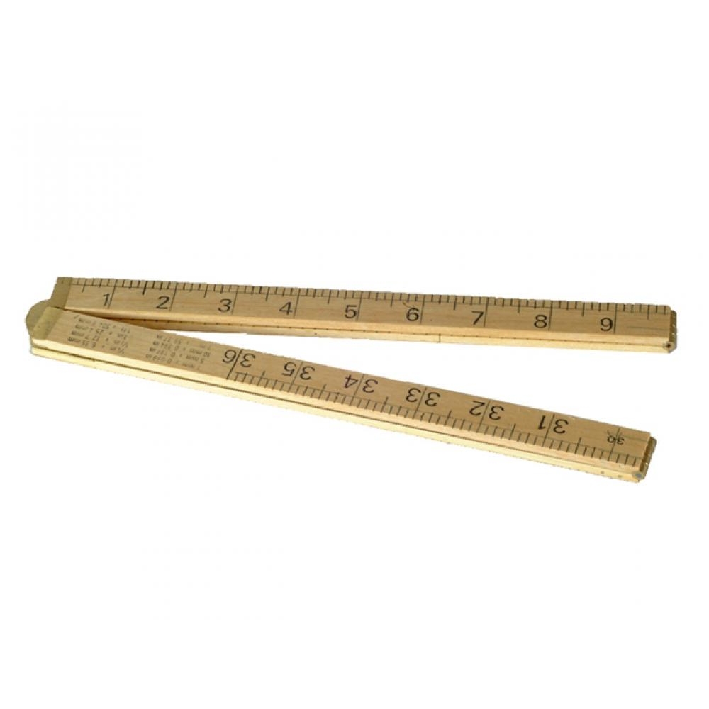 A hardwood four-fold rule with brass hinges and brass end caps.English imperial markings one side and metric markings on the other. Length unfolded: 1000mm (39in). Blister Packed