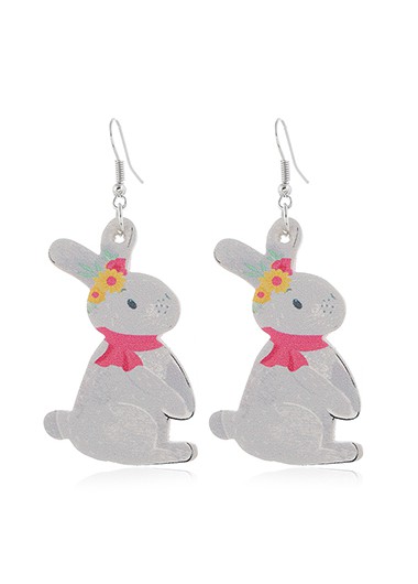 Rabbit Design White Plastic Earring Set