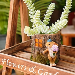 Rabbit Flower Holding Stump Flowerpot Decorative Objects Resin Modern Contemporary for Home Decoration Gifts 1pc Lightinthebox
