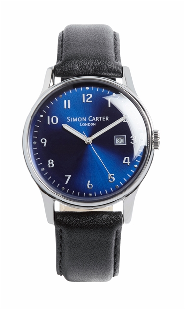 All stainless watch, quite deep at around 10mm, conspicuously domed glass, case diameter is 40mm, 20mm genuine leather padded strap. Date window at ‘3’, all Arabic raised formed (not printed) numerals somewhat in the manner of a vintage Tudor, and lightly ‘sunburst’ deep metallic blue brushed face. 5ATM, screw back.