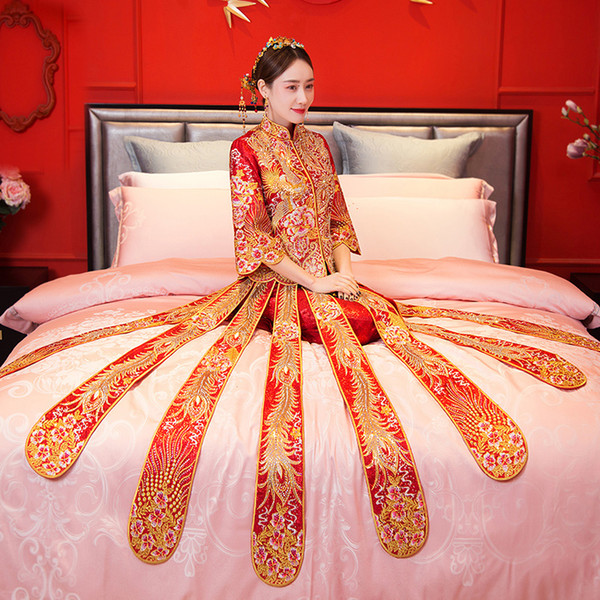 Red Wedding Chinese Traditional Qipao National Women's Clothes Foreign China Virgin Style Cheongsam S-xxl N9ex