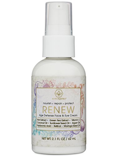 Renew Anti Aging Face And Eye Moisturizer Cream With Hyaluronic Acid, Green Tea & More (2oz.) Natural & Organic Ingredients to Rejuvenate Wrinkles, Crows Feet, Under Eye Bags Dark Circles