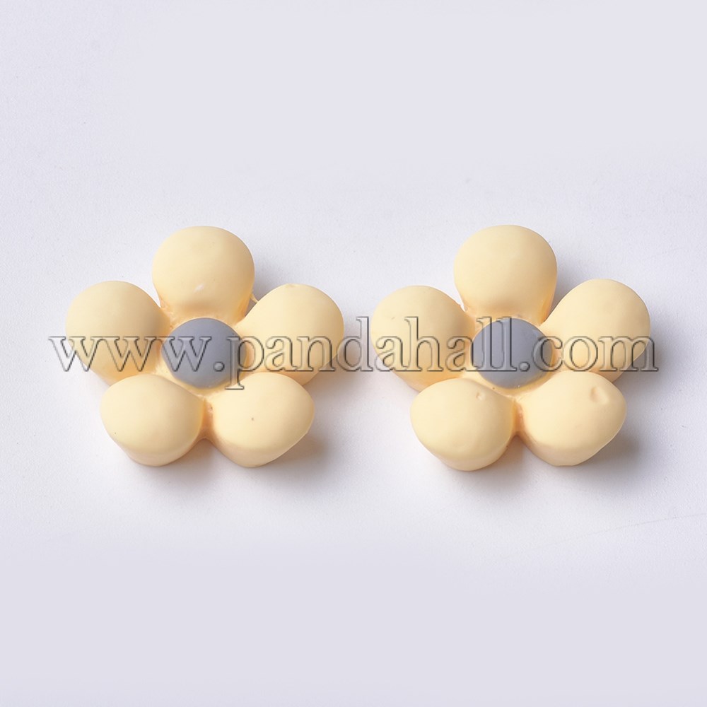 Resin Cabochons, Flower, Yellow, 24~24.5×24.5~25×7~8mm