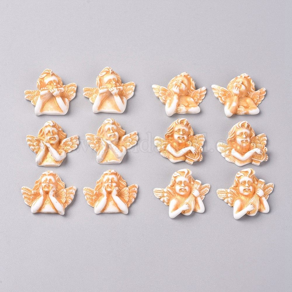 Resin Cabochons, Spray Painted, Angel, Goldenrod, 25~27×27~32×8.5~13.5mm, 12pcs/set