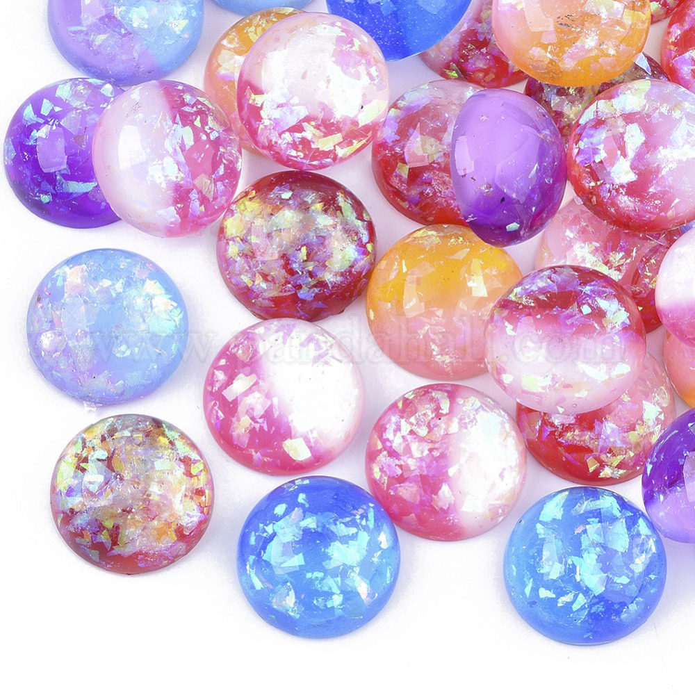 Resin Cabochons, with Glitter Sequins/Paillette, Half Round/Dome, Mixed ColorSize: about 19.5mm in diameter, 9.5mm thick.