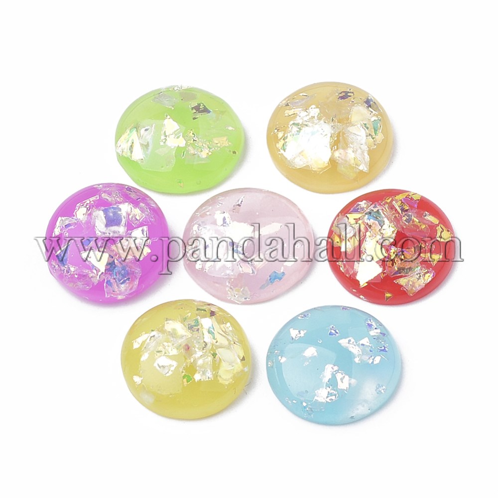 Resin Cabochons, with Shell Chip, Half Round, Mixed Color, 16x5mm