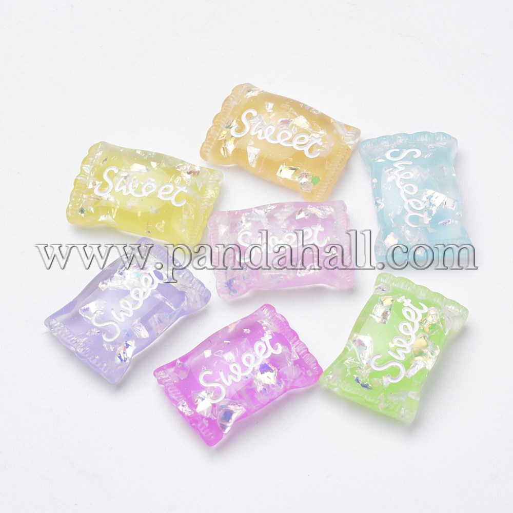 Resin Paillette Cabochons, Candy, Mixed Color, 24.5x17x8mm