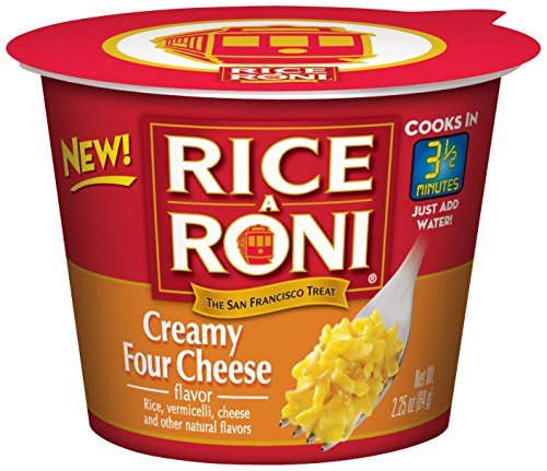 Now you can enjoy the great taste of Rice-A-Roni in convenient, single-serve cups that you cook in your microwave. Our Rice-A-Roni Creamy Four Cheese flavor blends tender rice with a mix of four creamy cheeses and other natural flavors to create a rich and comforting classic! Enjoy as a snack or as a side dish.Our Rice-A-Roni Creamy Four Cheese flavor blends tender rice with a mix of four creamy cheeses