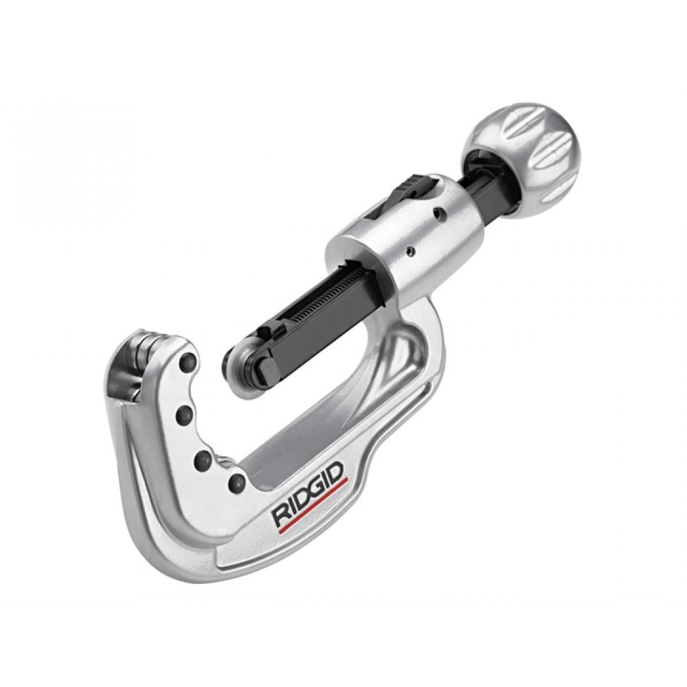 Designed for optimized performance on stainless steel tube, the Ridgid 65S cutter has a specially designed cutter wheel, with six individual bearings, which replace traditional rollers. The bearings create a smoother cut, and allow for increased speed around the tube. The cutter has a quick-acting mechanism, which rapidly adjusts to different sized tubing.An oversized, easy-to-grip knob allows for quick and easy adjustments, and the contoured frame allows for easy alignment while adjusting the cutter to make a cut. Capacity: 6-65mm.