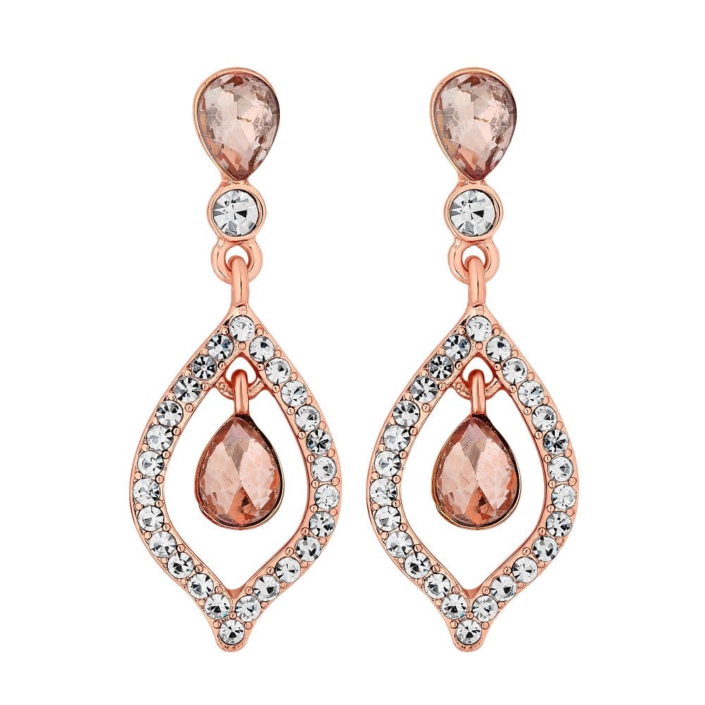 Rose Gold Plated Pink Crystal Double Teardrop Earring