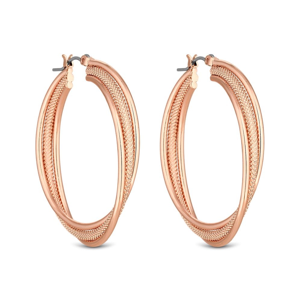Rose Gold Plated Texture Cross Over Hoop Earring