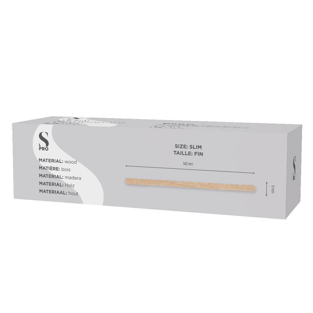 These high quality slim spatulas are ideal for application of depilatory product. They are disposable and particularly suitable for hair removal of the upper lip, eyebrows and other areas where a small applicator is required. Flexible and manageable for a smooth, efficient and hygienic wax application. L: 14cm. Available in a pack of 100.