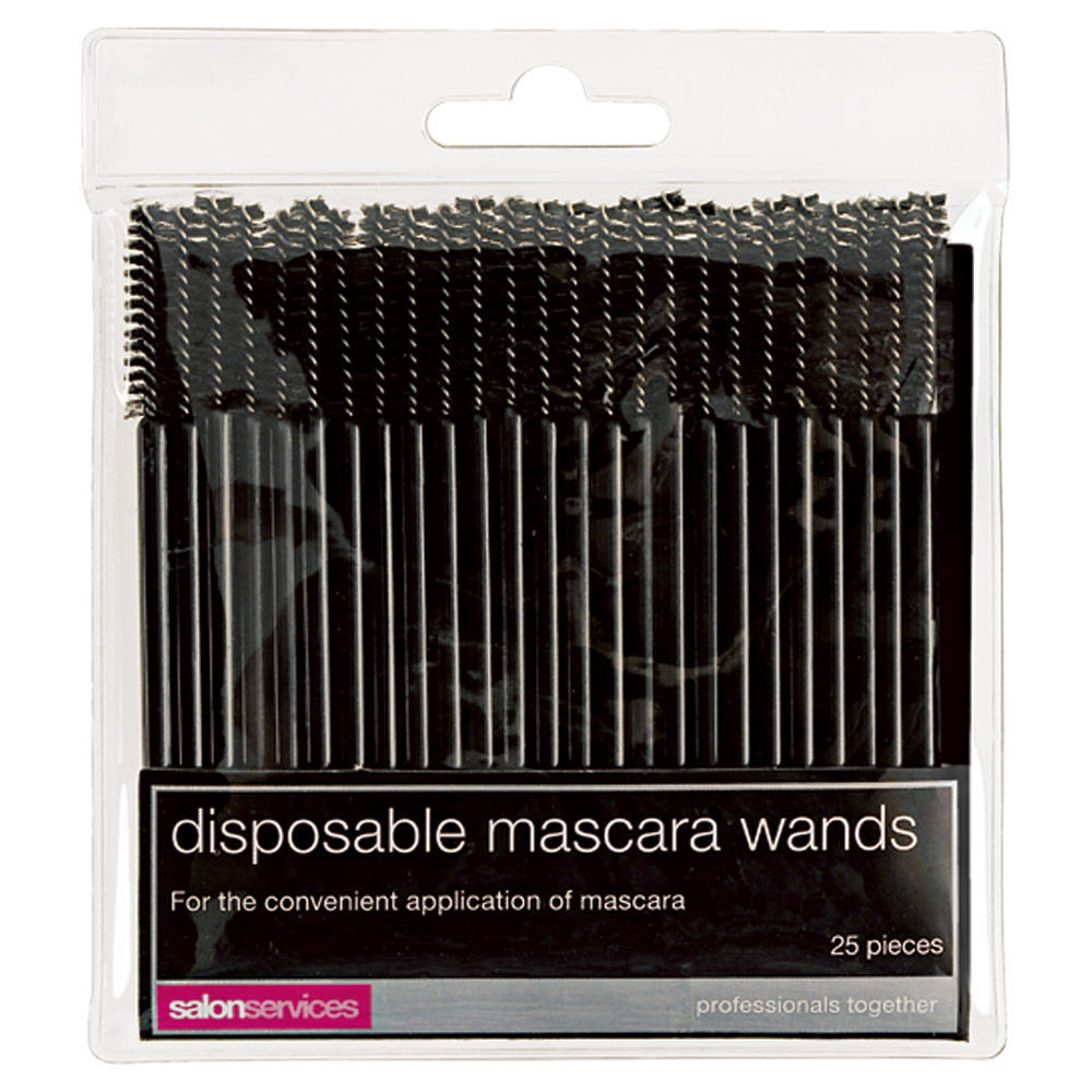 A pack of disposable Mascara Brushes from Salon Services, ideal for the convenient application of mascara. Can be used once then discarded to retain high standards of cleanliness during treatments. Supplied in packs of 25.