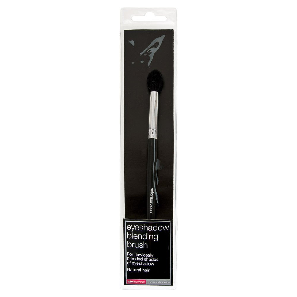 Flawlessly blend eye shadow with Salon Services Eyeshadow Blending Brush. Designed to reach into the tiniest corners and deposit the perfect amount of eye shadow or creamy concealer under the eyes. Made from natural hair.
