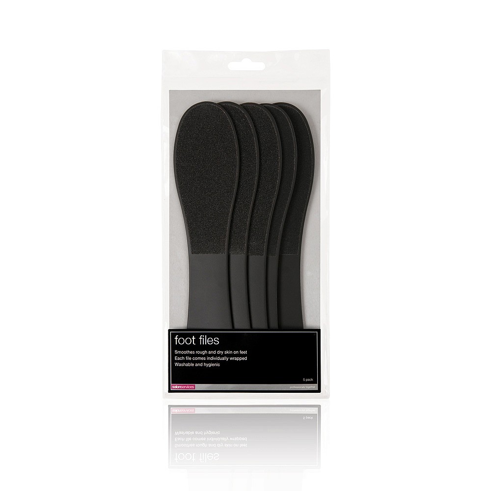 Salon Services Foot Files are the perfect professional level accessory for pedicure treatments in your salon. Each file can smooth rough and dry skin and prepare feet for further treatment, or as a treatment on their own. This pack contains five files.