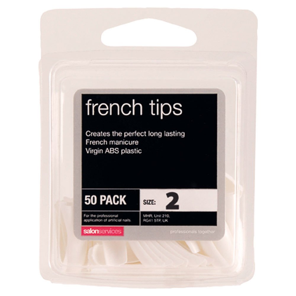 Create the ultimate long-lasting French manicure look quickly and easily with these durable French Tips from Salon Services. Offering the perfect compromise between high quality and good value, the tips in this range are designed for comfort, are easy to use and will help to sculpt a natural look. Made from a highly durable virgin ABS plastic, they are less likely to crack and non-yellowing. Available in 10 sizes, pack of 50 tips supplied.