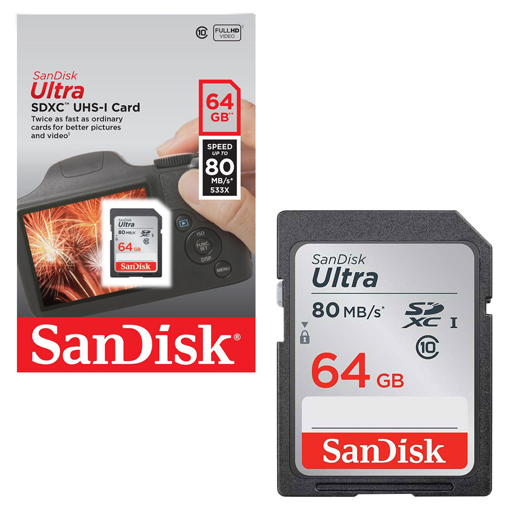 Sandisk Ultra SDXC SD Memory Card Class 10 – UHS-I Fast 80MB/s 64GB