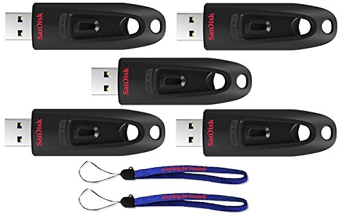 SanDisk Ultra USB (5 Pack) 3.0 64GB CZ48 Flash Drive High Performance Jump Drive/Thumb Drive/Pen Drive up to 130MB/s – with (2) Everything But Stromboli ™ Lanyard