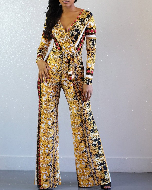 Be the first to review “Scarf Print Deep V Belted Jumpsuit”
