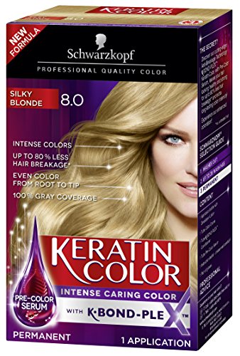 Schwarzkopf Keratin Color Anti-Age Hair Color Cream, 8.0 Silky Blonde (Packaging May Vary)