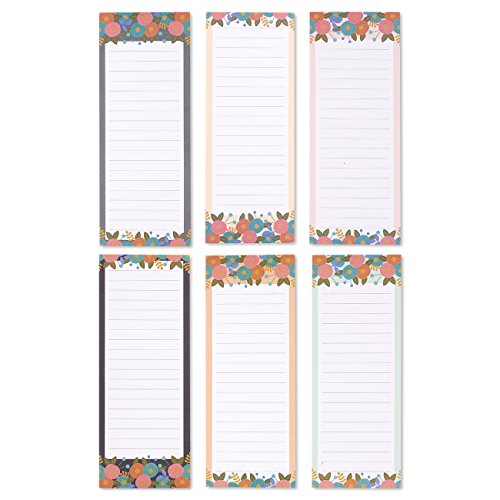 Set of 6 Magnetic Notepads – Magnetic Memo Pads, Floral Pattern Fridge Notepads for Grocery Lists, To Do Lists, Family Chores, 3 Designs – 3.5 x 9 Inches