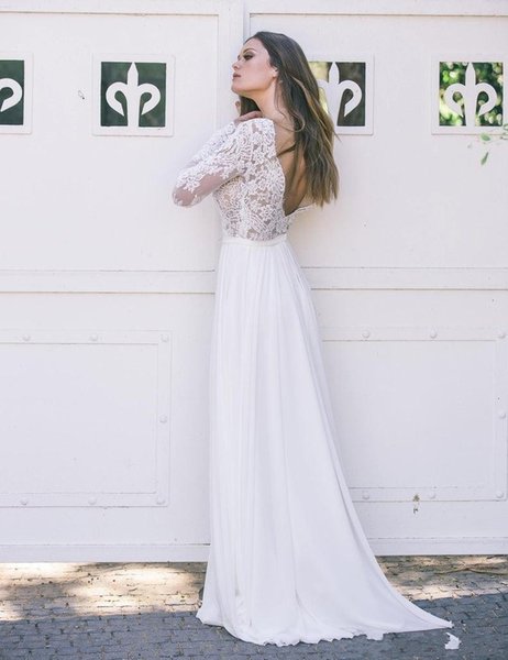 Sexy Open New Back Long Sleeves Country Bohemian Wedding 2021 Cheap Vinatge v Necl Lace Top Chiffon Beach Boho Bridal Gown 90Z4