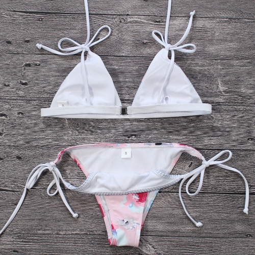 Sexy Women Bikini Set Floral Print Striped Splice Strappy Wireless Bathing Suit Swimsuits Two Piece Beach Wear