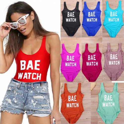 Sexy Women Swimsuit Bodysuit One Piece Swimwear Letter Print Monokini Bathing Suit