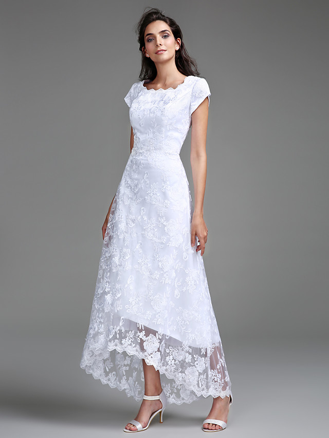Sheath Column White Boho Beach Wedding Dress