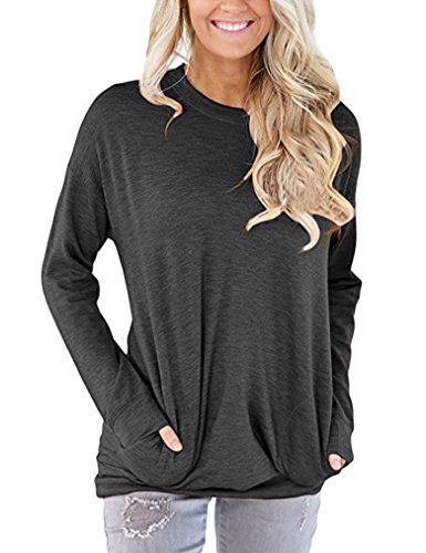 Sherosa Women’s Casual Long Sleeve Round Neck Sweatshirt Loose Tunic Blouse Top With Pocket